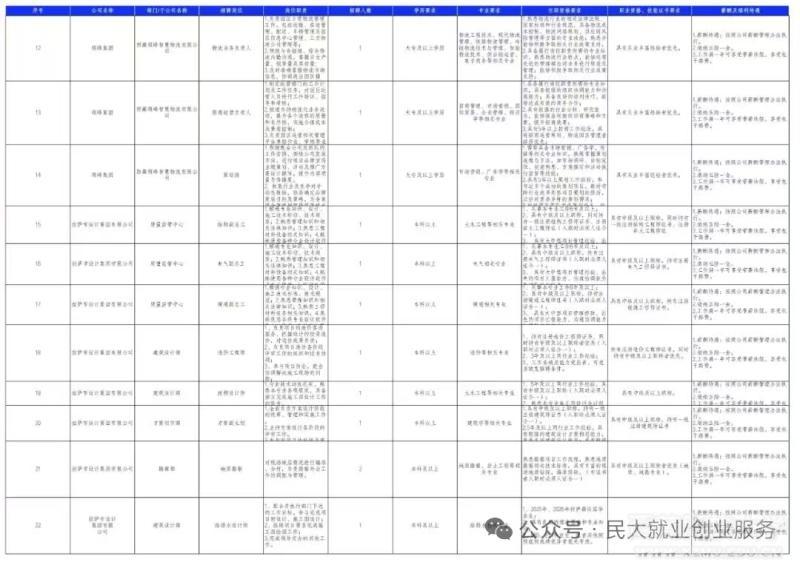 各岗位的资格条件详见附件一:拉萨市城投公司2025年招聘岗位一览表.xls