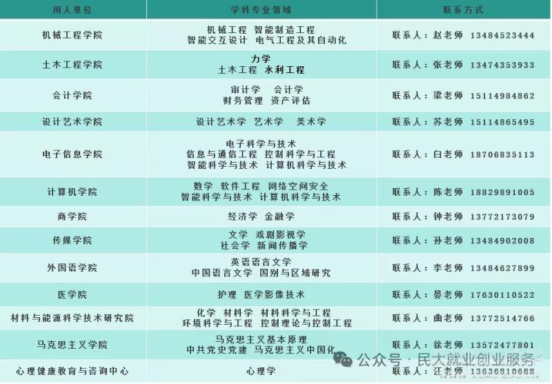 学校简介 西京学院创建于1994年,2005年获批为普通本科高校,2009年获学士学位授予权,2010年作为全国第一所民办高校通过教育部本科合格评估,2011年获批“服务国家特殊需求人才培养项目”——开展硕士专业学位研究生培养,2017年通过教育部本科教学审核评估,2018年被陕西省确立为“一流学院”建设单位,2021年获批为硕士学位授予单位。 学校现有11个学院和2个教育中心,设有11个硕士专业学位点、39个本科专业,建有19个省市级科研平台、6个校级科研平台,积累了一系列创新成果。 详情请关注官网:https://www.xijing.edu.cn/ (一)具有社会主义核心价值观念,恪守学术道德,为人师表,品行端正,遵纪守法,身心健康,能全职在岗工作。应聘马克思主义学院教师应为中共党员; (二)热爱教育事业,责任心强,具有良好的沟通能力、团队合作和奉献精神; (三)具有扎实的专业知识和具备讲授专业课程的能力,科研潜力满足学校学科发展需要; (四)具有博士学历学位;本、硕、博专业一致或相近,研究方向符合学科发展需求,年龄一般不超过35岁,有副高及以上职称的适当放宽年龄限制。 (一)薪酬福利:提供具有竞争力的薪酬待遇,具体标准参照学校薪资体系执行。对于高层次人才,学校将根据其科研水平、学术成果及发展潜力,采取“一人一议”的方式,确定薪酬; (二)科研保障:提供充足的科研启动经费,全力支持开展科研工作。优先推荐申报各类国家级、省部级人才计划和科研项目,助力学术发展; (三)科研奖励:根据学校科研奖励政策,对取得高水平科研成果的教师给予奖励,激励创新; (四)职业发展:学校建有完善的职称晋升体系和教师发展体系,支持教师参加国内外学术会议、访学交流及进修深造; (五)福利保障:办理“五险二金”(养老保险、医疗保险、生育保险、工伤保险、失业保险、住房公积金及企业年金)。提供安家费、校内住房、工作餐、年度体检、疗休养等贴心福利; (六)子女教育:学龄前及义务教育阶段子女可优先入读西京学院幼儿园、西京小学及西京初级中学,享受优质教育资源,并享有学费优惠政策。 (一)扫右下角二维码进行注册; (二)上传附件包括本硕博毕业证、学位证、身份证、职称证书、资格证书、获奖证书等扫描件。 联系人:吴老师 电 话:029-85628101 邮 箱:rsc126@126.com XIJING UNIVERSITY 请扫码注册简历 特别说明 西京学院人事处是负责我校人才招聘的唯一部门,我校从未授权任何第三方机构进行任何形式的公开招聘活动。且在招聘过程中不会向求职者收取任何费用。任何以我校名义进行的收费招聘行为均属虚假行为,与我校无任何关系。求职者一旦发现此类虚假招聘,请立即向当地公安机关报告。