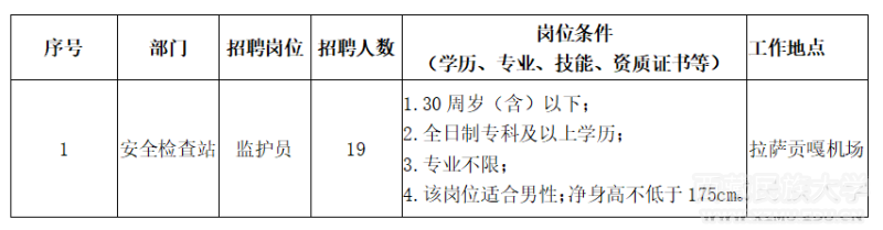 (二)本次招聘暂未委托任何第三方机构,不收取任何费用。面试及录用通知将通过电话或短信告知,具体内容以通知为准。若招聘人员存在违规违纪行为,请向西藏机场集团纪委办公室反映。
