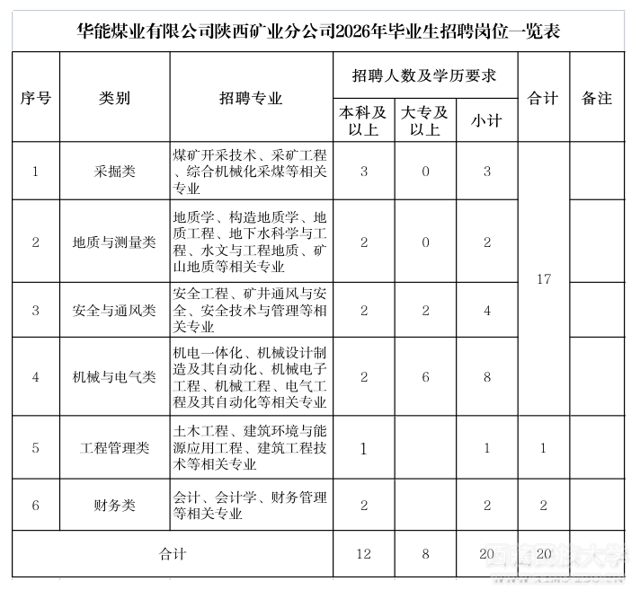招聘公告 |华能煤业有限公司陕西矿业分公司招聘公告