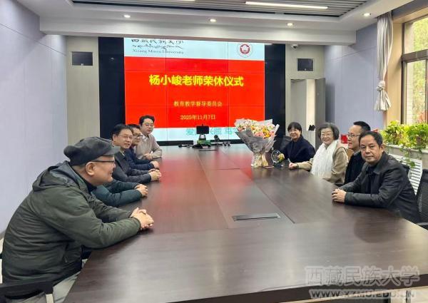 荣休仪式上,部门领导对杨小峻老师送上真挚的祝福,并表达崇高的敬意。感谢她29年来为学校发展做出的奉献,敬佩她认真的工作态度,践行了“爱国、兴藏、笃学、敬业”的校训。希望杨老师退休后一如既往地关注学校的发展!