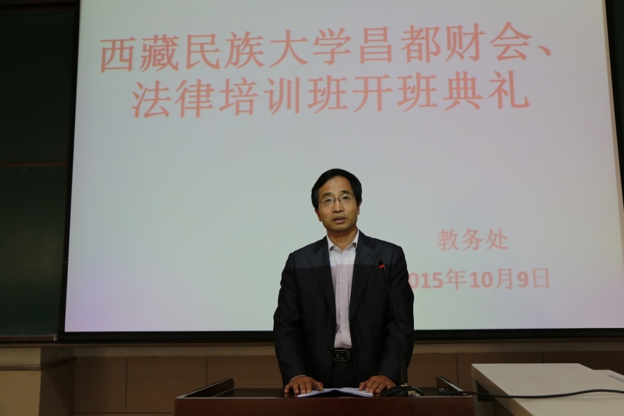 10月9日上午,昌都财会、法律培训班开班典礼在T203教室隆重举行。学校党委常委、副校长池万兴教授,学生工作部、财经学院、法学院、教务处相关领导,昌都培训班总领队洛曲同志及全体96名学员出席。本次典礼由教务处副处长付奋奎主持。