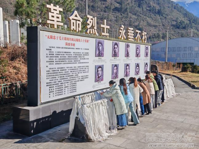 红色波密,薪火相传。1月19日,实践团走进波密开展爱国主义教育活动,在红色沃土中汲取奋进力量。川藏线上十英雄纪念碑前,师生们肃立默哀、敬献哈达,认真学习李显文等十位英雄“不怕困难、忠诚使命、无私奉献”的壮烈事迹,集体朗诵《帕隆藏布江畔的丰碑》,英雄精神深深震撼着每一位队员的心灵。在扎木中心县委红楼,大家重温西藏和平解放的光辉历史,了解“扎木保卫战”等重要事件,感悟“忠党报国、造福人民”的红楼精神;在“老西藏”口述史红馆《丰碑》,从老报纸、老档案中探寻历史印记,汲取“老西藏精神”与“两路”精神的奋进力量;在易贡将军楼,瞻仰西藏民族大学首任校长张国华将军雕像,深入学习他在雪域高原的奋斗历程,对“特别能吃苦、特别能战斗、特别能忍耐、特别能团结、特别能奉献”的老西藏精神有了更深刻的体悟。实践团还深入易贡茶场调研特色农业产业化发展,走进扎木镇扎木村、卡达村,发放推普宣传0手册,现场为村民书写春联、赠送福字,在笔墨书香与亲切互动中0,拉近校地距离,增进民族情感认同。