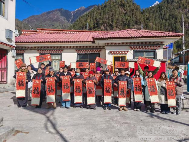 团队以铸牢中华民族共同体意识为主线,通过进铁路、进乡村、进社区、进家庭、进企业、进机关等方式,为群众发放《中华人民共和国国家通用语言文字法》宣传册2000余份,赠送“铸牢”书法作品、春联福字1万余幅,活动覆盖20余个村(社区)。其中,10余名民族学专业师生组成的分队深入林芝市巴宜区、墨脱县、波密县,开展爱国巡边、田野调查、红色研学、校地交流等一系列有形、有感、有效的实践活动,让思政课堂走出校园、扎根边疆,在雪域高原以“有形”之举筑牢强国语言基石,以“有感”之温凝聚人心,以“有效”之为助力乡村振兴,书写了青春与振兴交融的崭新篇章。青年实践团的寒假实践事迹被《中国民族教育》试点专栏动态转载报道。