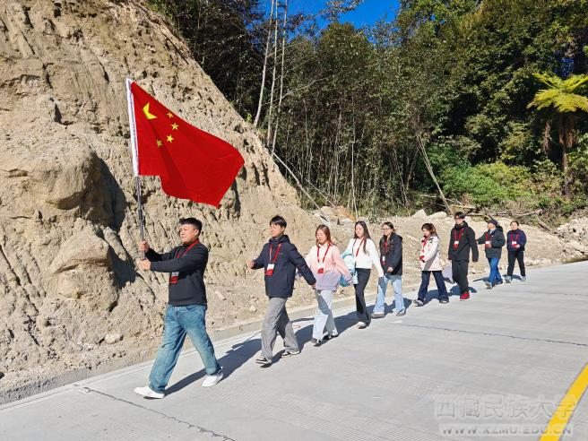 1月11日至12日,师生们深入墨脱开展爱国巡边与田野调查,在祖国边陲厚植爱国情怀、践行守边使命。大家先后走进墨脱县爱国强边教育基地、墨脱公路记忆馆、老墨脱精神广场,在誓师强边广场集体庄严宣誓,从三代解放大桥、碉楼、历史图文回廊中,感悟边疆儿女守卫边防的峥嵘岁月与攻坚克难、甘于奉献的“老墨脱精神”。在甘登乡格林村,实践团调研当地特色茶产业发展现状,走访民族团结进步模范家庭,为村民送去饱含新春祝福的福字;更手擎五星红旗,跟随戍边干部行走在巡边路上,用脚步丈量边疆土地,用实际行动传承爱国守边精神。此外,师生们还参观墨脱易地搬迁纪念馆与门珞历史文化遗产博物馆,领略墨脱在强边固防、兴边富民、民族团结上的丰硕成果。实践调研团师生与墨脱县委统战部副部长、民宗局局长、西藏民族大学2013级杰出校友格桑达瓦、县文旅局相关负责同志就民族团结进步创建、非遗传承保护、民族学专业学生就业等工作开展座谈,为校地合作搭建坚实桥梁。
