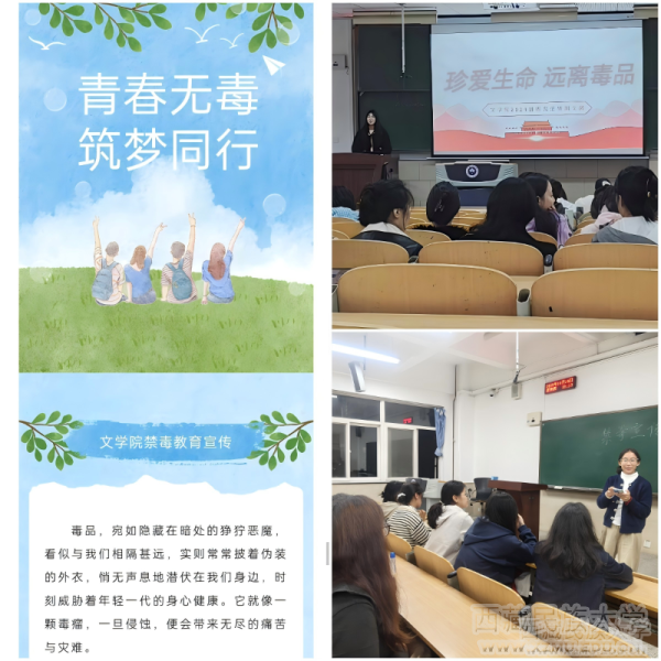 为拓展教育覆盖面,文学院团委同步在“民大文院”微信公众号推送禁毒主题知识,系统介绍常见毒品类型及其伪装形式,详细解析毒品危害,发布防范指南与行动倡议,助力筑牢校园禁毒防线。