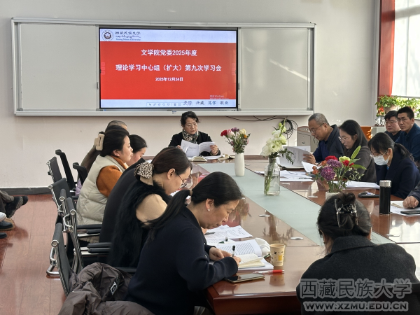 12月24日下午,文学院党委召开2025年度党委理论学习中心组(扩大)第九次学习会,专题学习《习近平法治思想学习纲要》重点内容。学院领导班子和全体教职工参会,会议由学院党委书记任秀丽主持。