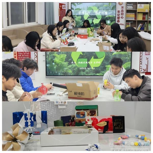 为深入学习贯彻习近平生态文明思想,全面落实立德树人根本任务,响应学校“崇尚节约 保护环境”开学第一课主题教育活动号召,3月15日晚,文学院在三号、六号公寓“一站式”青年之家开展废旧物料创意制作活动,以趣味实践让节约环保教育落地生根、走深走实。