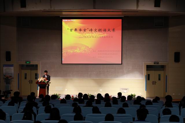 2011年11月7日晚19:00,西藏民族学院“秋之实”校园文化节系列活动之“百年辛亥”诗文朗诵大赛在学术报告厅举行。本次比赛由西藏民族学院党委精神文明办公室(宣传部)、共青团西藏民族学院委员会主办,西藏民族学院文学院承办。出席活动的领导和嘉宾有:西藏民族学院党委常委、副院长池万兴教授,西藏民族学院党委宣传部副部长、文明办主任丁小丽老师,西藏民族学院团委副书记陈敦山副教授,以及各二级学院党总支书记、副书记和团干、辅导员。担任本次比赛的评委老师有:教务处处长李波教授,文学院院长袁书会教授,新闻传播学院王彪老师,原政法学院教授孔艳霞老师,民族研究院副教授纵瑞彬老师。各二级学院的学生代表共计300余人观看了比赛。