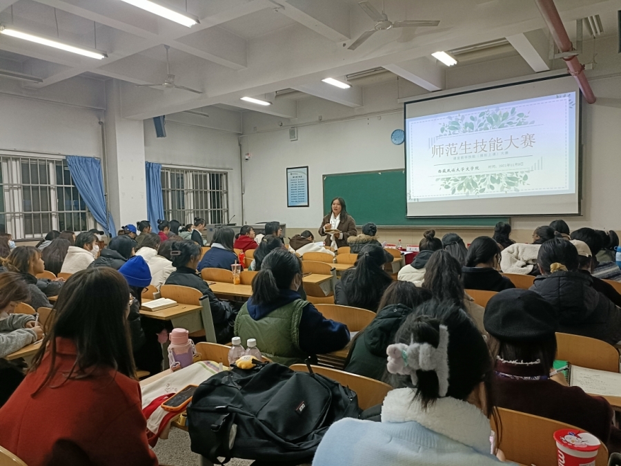 来自文学院师范专业的达娃琼拉、参珍、董雨潇、李泊漩、彭扬飞等五位同学依次进行课堂教学技能的展示,比赛过程中,同学们各尽所长,流畅授课,教态端庄大方,为我们呈现出一堂堂精彩纷呈的语文课。充分展现了我院师范生良好的风采及过硬的专业素养。五位评委从教案设计、教学内容、教学方法、教学组织、教学语言和教态五方面分别对选手们进行了现场点评和指导。