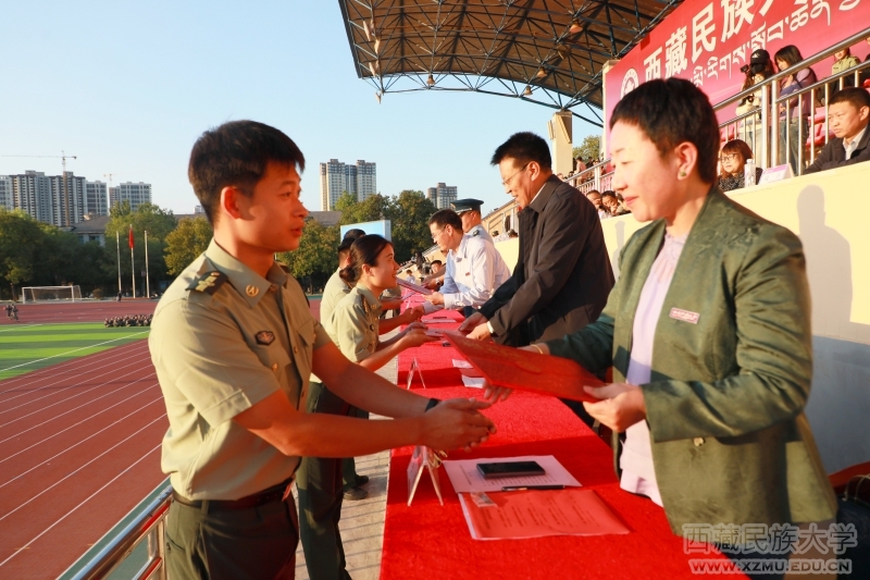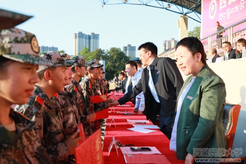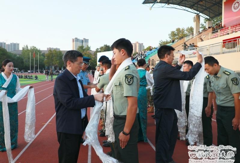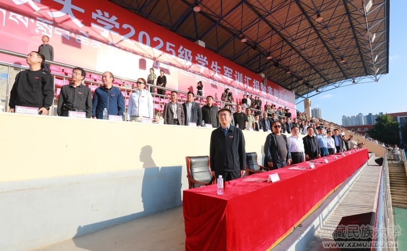 为全面检验2025级学生军训成果、彰显军训育人成效,9月19日下午,学校举办2025级学生军训汇报大会。学校领导采守宽、罗旺次仁、马静、焦忠武、次旦玉珍、张继旺、许铿出席;渭城区人民武装部部长侯骏、自治区教育厅规划处一级调研员次仁国杰、自治区财政厅科教文处副处长冯凯等嘉宾出席。学校军训领导小组成员、各学院及相关职能部门负责人、老生代表、全体军训学员共计4000余人参加大会。大会由学校党委常委、副校长王浩主持。