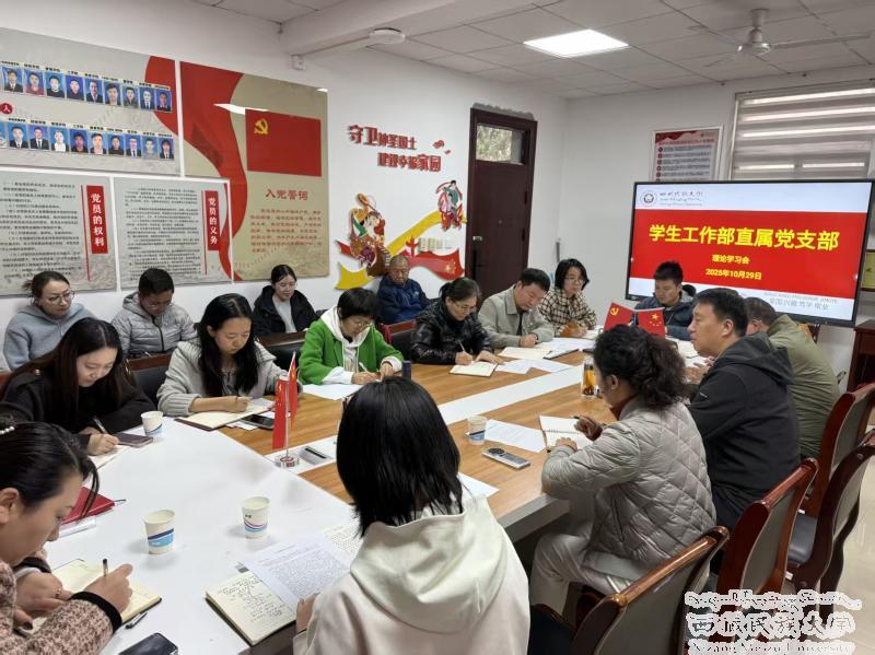 10月29日下午,学生工作部直属党支部召开理论学习会。学校党委常委、副校长王浩出席会议并领学相关内容,同时以“锤炼信念、树牢宗旨、坚定党性”为主题讲授专题党课。