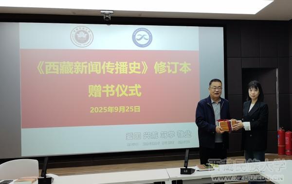 活动伊始,举行了简短的赠书仪式。周德仓教授向新闻与传播学院赠送了五本其最新修订的《西藏新闻传播史》,执行院长金石代表学院接受赠书并对周德仓教授表示感谢。
