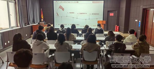 罗亚娟详细介绍了培训班的基本情况、课程设置体系、教学组织形式及培训纪律要求。随后,她重点讲解了党员发展工作的流程,强调发展党员要以“政治标准是首位”的根本原则,详细讲解了从培养考察、政治审查到预备党员接收、教育、考察和转正等环节的关键要求与注意事项。她要求全体学员,要认真学习《党员发展对象培训教材》,达到熟练掌握党的基本理论、基本路线、基本方略,熟悉发展党员工作流程,将理论学习与党性锤炼贯穿于发展流程的全过程,在日常学习与未来专业实践中,牢牢把握正确的政治方向、舆论导向和价值取向,以实际行动争取早日加入中国共产党。