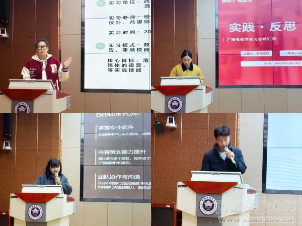 索南卓玛以“实践、反思、成长”为主题分享实习经历。她在双湖县融媒体中心新闻采编科实习3个月,核心收获是从镜头前“手足无措”到从容出镜的蜕变,了解基层媒体实践生态。期间参与5条县域新闻出镜报道,独立完成3条民生类短视频制作,建议同学们走出舒适区,在实战中突破自我。 广播电视学专业教研室蔺海元老师总结了本次实习的整体情况,既肯定学生的蜕变成果,也指出不足并提出改进建议。他强调,实习是学生从校园迈向社会的关键蜕变节点,希望大家以实习大纲为指引,补短板、强优势,将实践收获转化为职业发展动力。