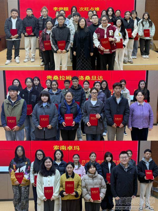 杨忠宁副院长宣读了2026届毕业生实习成果评比获奖名单。本次共收集实习成果179份,评选出优秀成果55份。其中,22新闻本1班李俊颐等4名学生荣获一等奖,22广告本班德庆等10名学生荣获二等奖,22广电本曲吉等15名学生荣获三等奖,24广告专升本拉巴普尺等25名学生荣获优秀奖。各专业教研室教师代表分别为获奖学生颁发荣誉证书。