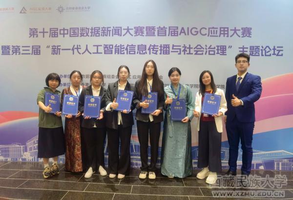 11月8日,第十届中国数据新闻大赛暨首届AIGC应用大赛决赛在珠海北师香港浸会大学落幕,西藏民族大学新闻与传播学院学子不负众望,包揽全国一、二、三等奖等多项荣誉,指导老师化睿云、曾洁分获“突出贡献奖”“优秀指导老师奖”。
