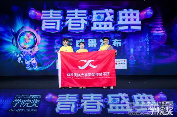 12月27日至29日,“中国大学生广告艺术节学院奖2025秋季征集大赛·青春盛典”在北京广播大厦举行。西藏民族大学新闻与传播学院学生作品斩获快克药业命题营销策划类三等奖,师生代表受邀出席盛典成果展示。