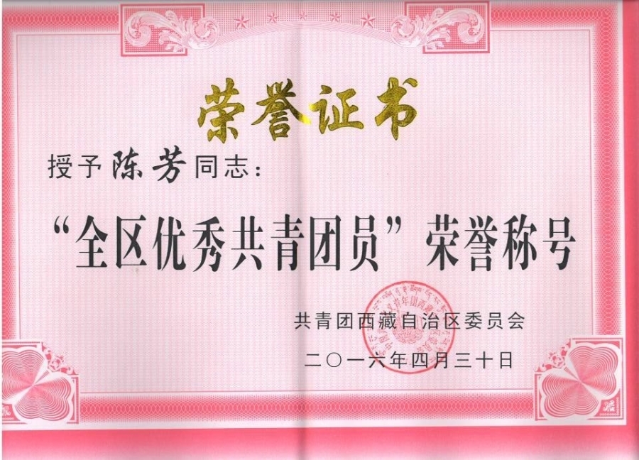 近日,我院2012级毕业生陈芳获得2015年度“全区优秀共青团员”称号. 陈芳,女,瑶族,1992年6月出生,共青团员,西藏民族大学新闻传播学院2012级新闻一班学生,《民大青年》报社主编。